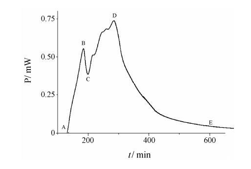 图 1 在 37℃ 下,由微量量热计监测的在蛋白胨培养基中培养的志贺痢疾杆菌的 P-t 生长曲线