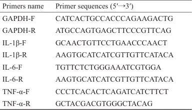 提取肺组织总RNA,使用逆转录试剂盒将RNA逆转录为cDNA。在LightCycler 480 II实时荧光定量PCR系统中,使用SYBR Green qPCR Master Mix进行qPCR检测。数据以2-ΔΔCt方法表示相对表达量的变化倍数。所用引物序列如表1所示。