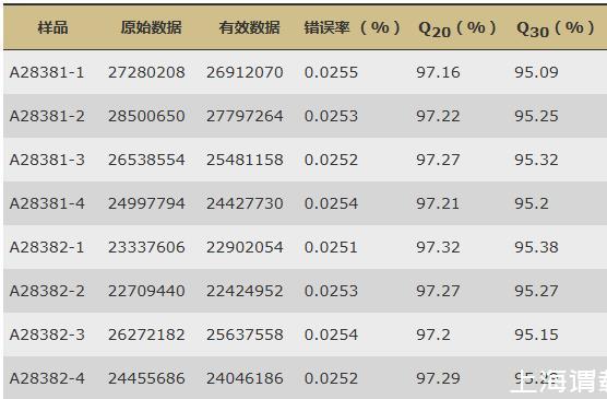 注:样品A28381-1-A28381-4为正常组;A28382-1-A28382-4为滇黄精水提物组;Q20:Phred数值大于20的碱基占总碱基的百分比;Q30:Phred数值大于30的碱基占总碱基的百分比。