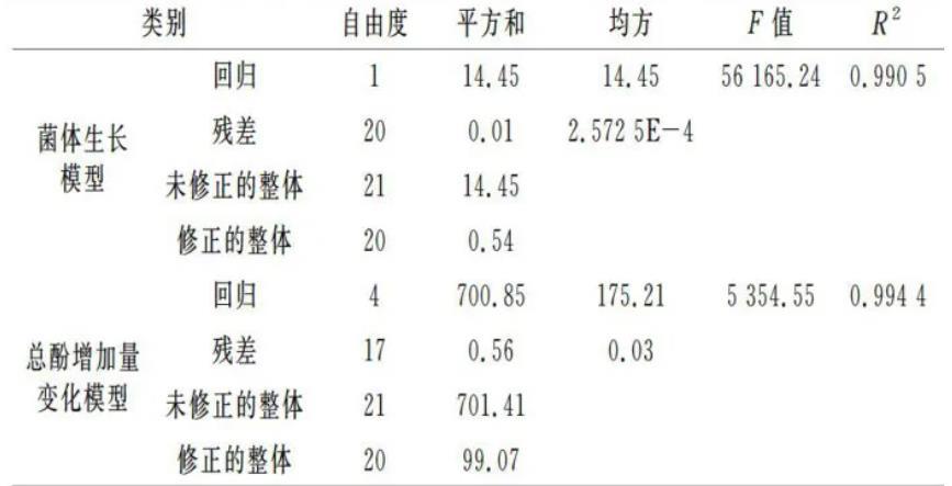 表2红枣汁发酵动力学模型方差分析