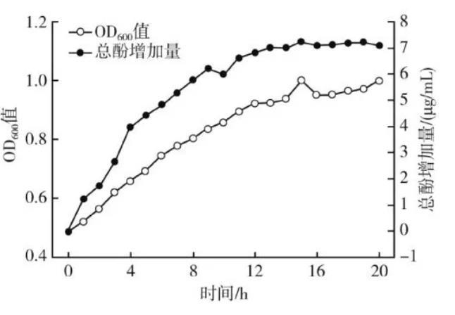 2.4.1菌体生长和总酚含量变化动力学曲线