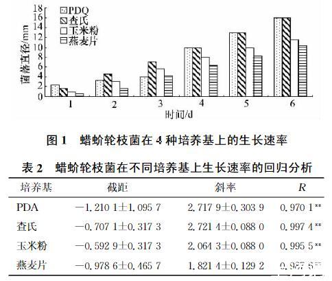 表2蜡蚧蚧轮枝菌在不同培养基上生长速率的回归分析