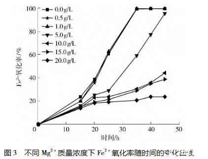 2.3 Mg2?质量浓度对体系Fe2?氧化率的影响