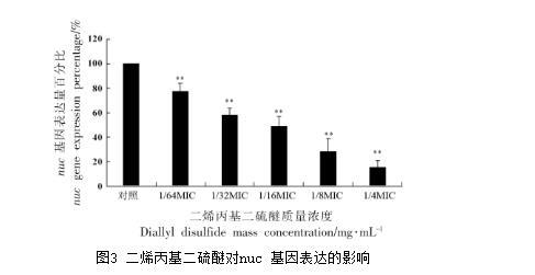 图3二烯丙基二硫醚对nuc基因表达的影响