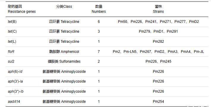 表2多杀性巴氏杆菌耐药基因检测结果