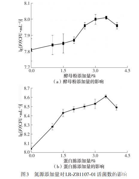 2.2.2 氮源添加量对LR-ZB1107-01活菌数的影响