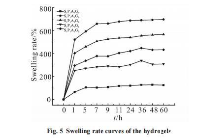 水凝胶的溶胀性能是评价其吸水率的重要参数,SPAG水凝胶在PBS缓冲液中的溶胀性能测试结果见Fig.5。